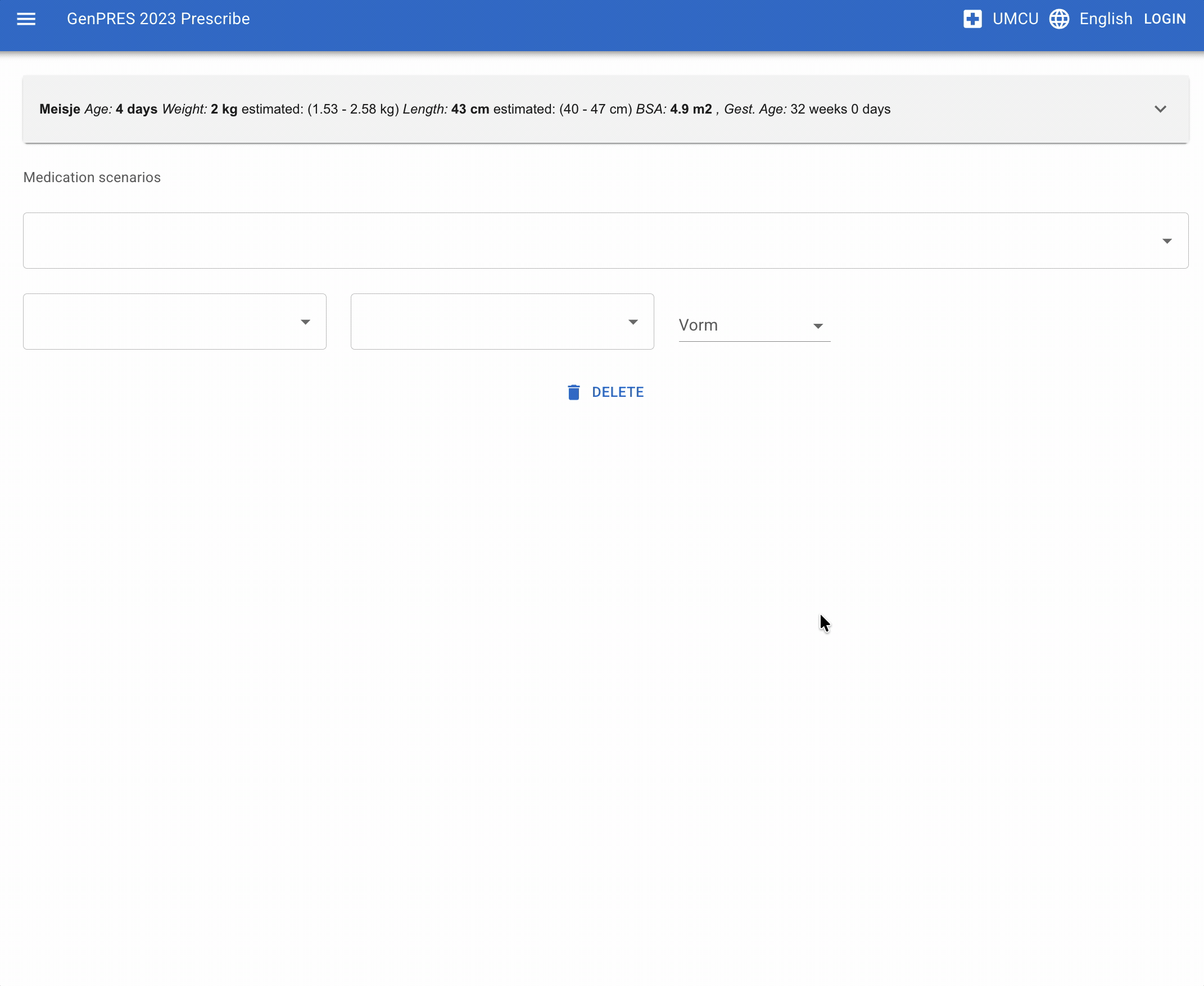 The example above shows that when the patient context is known—in this case, a neonate with a gestational age of 32 weeks—the correct dose can be automatically determined, rather than requiring the clinician to choose from multiple options.